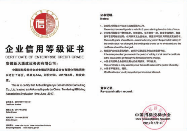 企業(yè)信用等級(jí)3A